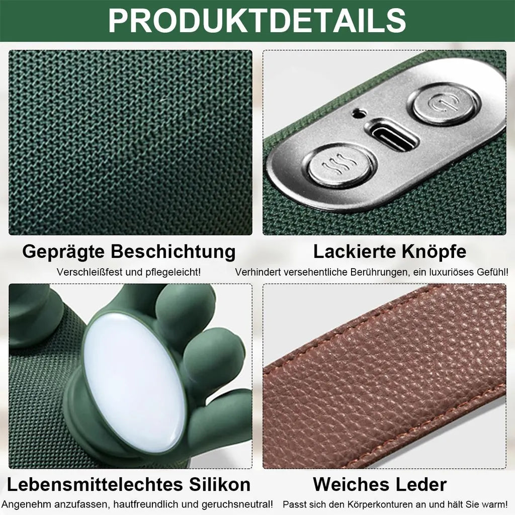 Simuliert professionelle Massagetechniken wie Kneten, Heben und Druckpunkte, entspannt die Trapez- und Hals-Splenius-Muskeln tief und lindert Steifheit und Schmerzen. Die intelligente Wärmekompresse mit konstanter Temperatur leitet Wärme direkt an die Muskeln ab, fördert die Durchblutung und lindert tiefsitzende Müdigkeit.