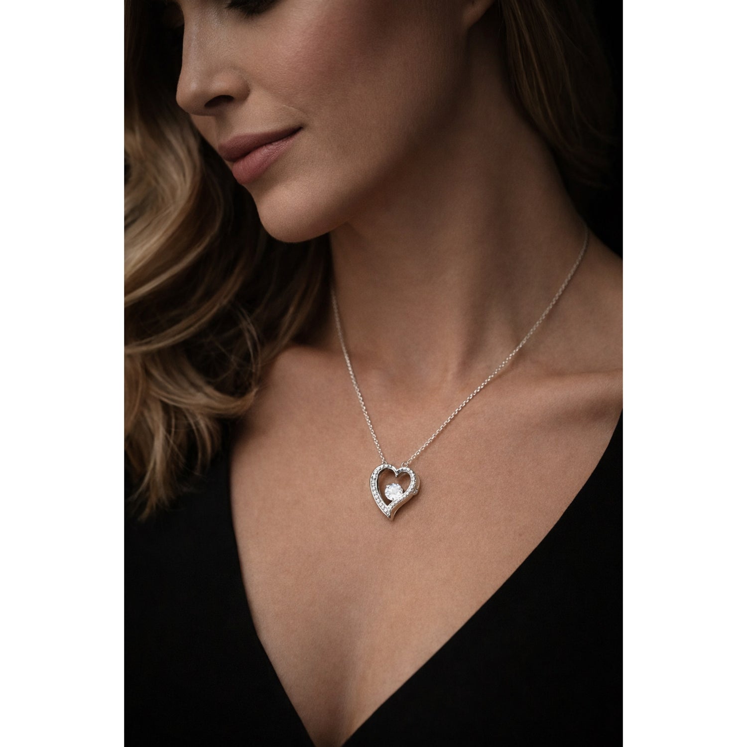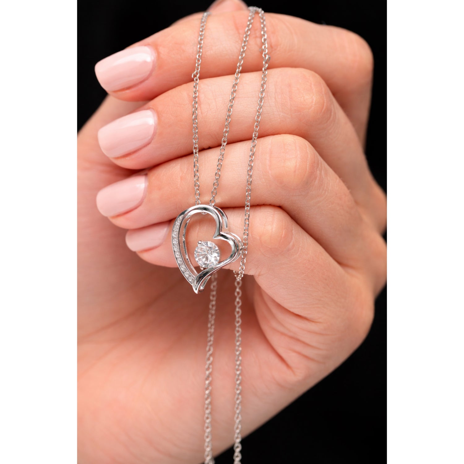 Diese schillernde Forever-Love-Halskette verfügt über einen polierten Herzanhänger, der einen makellosen 6,5mm-Zirkonia umschließt und der noch dazu mit kleineren Kristallen verziert ist, die zusätzlichen Glanz verleihen.
